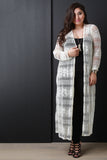 This cardigan features a semi-sheer fabrication, open front construction, floral lace design, and long sleeves construction. Accessories sold separately. Made in U.S.A. 97% Polyester, 3% Spandex.