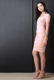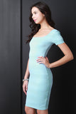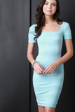 Pleated Square Neck Short Sleeve Bodycon Dress