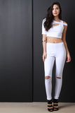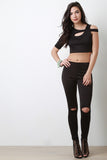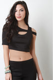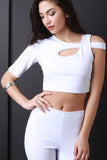 Elbow Sleeves And Open Shoulder Keyhole Crop Top