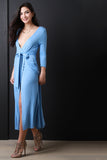 Deep Slit Wrap Side Midi Dress
