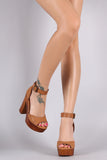 Bamboo Ankle Strap Chunky Wooden Platform Heel