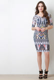 Semi-Sheer Tribal Print Midi Dress
