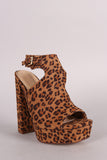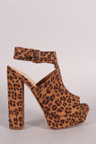 This stylish heel features a leopard print vegan suede upper, squared open toe silhouette, back cutout design, tribute platform, and chunky wrapped heel. Finished with lightly padded insole and adjustable ankle strap with side buckle fastening.