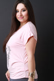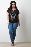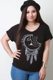 This plus size graphic tee features soft knit fabrication, round neckline, short sleeve construction , Moon graphics that reads"Love By The Moon" and pleated sides. Accessories sold separately. 97% Rayon, 3% Spandex.