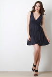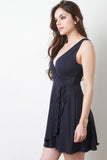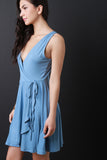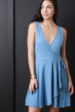 Solid Surplice Wrap Mini Dress