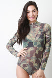 Mock Neck Printed Mesh Long Sleeves Bodysuit