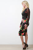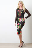 Roses Mesh Panel Bodycon Dress
