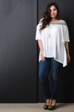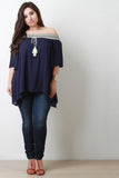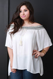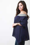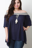 Off Shoulder Elasticized Tribal Tassel Peasant Top
