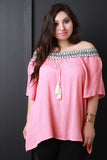 • Off Shoulder Elasticized Tribal Tassel Peasant Top