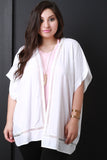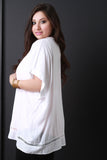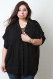 This cardigan features a crochet lace detail, short sleeve construction, woven fabrication, and open front closure. Finished with a waist length, loose fitting style. Accessories sold separately. 100% Rayon.