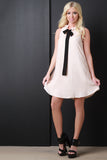 V-Neck Ribbon Tie Shift Dress