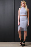 This casual midi skirt features a jersey knit fabrication, elasticized high waistline, figure-flattering silhouette, and finished with front distressed detail. Accessories sold separately. Made in U.S.A. 95% Cotton, 5% Spandex.