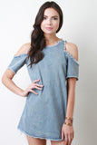 Cold Shoulder Fringed Denim Shift Dress
