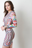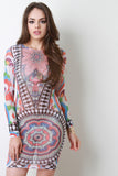 Semi-Sheer Mesh Floral Print Bodycon Dress