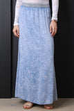 This skirt features acid wash fabric, elasticized crochet waistband, relaxed fit, and maxi length. Accessories sold separately. Made in U.S.A. 100% Rayon.