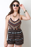 This bohemian style romper features tribal pattern print, v-neckline, spaghetti shoulder straps to a crisscross back, wide panel cinched waist panel, and shorts bottom. Accessories sold separately. 100% Polyester.