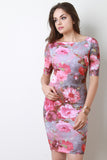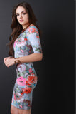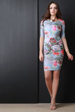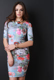 Square Neckline Floral Print Body Con Dress