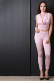 This top features a smooth jersey knit fabrication, choker neckline, front keyhole with draped cowl detail, and exposed rear zipper closure. Finished with a cropped hemline. Accessories sold separately. Made in U.S.A. 97% Modal, 3% Lycra.