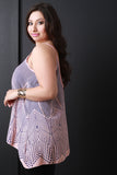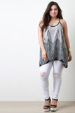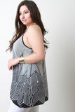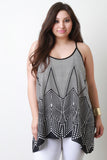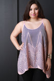 This plus size top features a lightweight knit fabrication, geometrical pattern print, spaghetti strap, and finished with a scoop neckline. Accessories sold separately. Made in U.S.A. 100% Polyester.