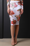 Semi-Sheer Mesh Floral Print Midi Skirt