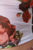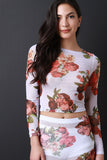 Semi-Sheer Mesh Floral Print Longsleeve Top