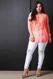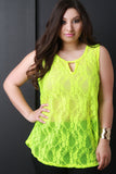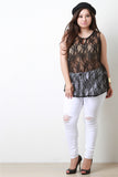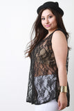 Semi-Sheer Floral Lace Keyhole Sleeveless Top