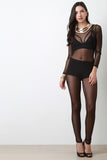 Semi-Sheer Mesh Long Sleeve Jumpsuit