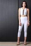 These jersey knit leggings features a high waisted elasticized band, stretchy sculpture fit, and capris crop. Accessories sold separately. Made in U.S.A. 95% Cotton, 5% Spandex.