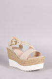 Bamboo Linen Asymmetrical Strappy Flatform Wedge