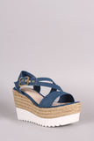 Bamboo Denim Asymmetrical Strappy Flatform Wedge