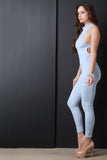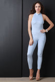 Vegan Suede Mock Neck Sleeveless Jumpsuit