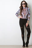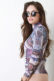 Semi-Sheer Mesh Mosiac Mock Neck Bodysuit