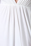 This maxi dress features a deep v neckline, and elastic waist, long sleeves with open slit from shoulder to wrist, a thigh high slit in skirt, and a soft knit fabrication. Accessories sold separately. Made in U.S.A. 96% Polyester, 4% Spandex.