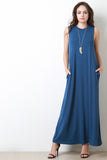 High Neck Sleeveless Shift Maxi Dress