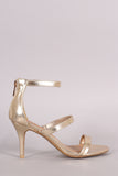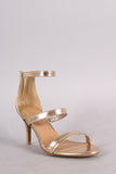 Bamboo Metallic Triple Straps Open Toe Kitten Heel