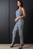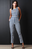 Vertical Striped Back Cutout Jumpsuit
