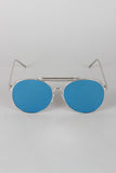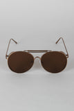 This steampunk-inspired sunglasses feature polished metal finish, wire rimmed, thin side shields, double bridge design, and nose cushions.