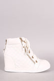 Zipper Quilted High Top Lace Up Wedge Sneaker