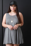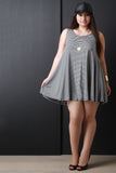 This plus size sleeveless dress features a soft jersey knit fabrication with stripe print throughout, scoop neckline, and flowy shift cut fit. Accessories sold separately. Made in U.S.A. 95% Rayon, 5% Spandex.