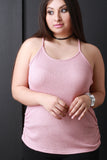 This plus size top features a soft thermal knit fabrication, round neckline, spaghetti straps, racer-back design, with a relaxed fit. Accessories sold separately. 88% Rayon 12% Polyester.