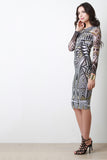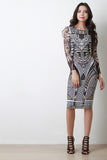 Abstract Squares Geometrical Mesh Sleeves Dress