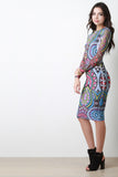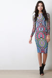Abstract Tribal Mirror Mesh Sleeves Dress