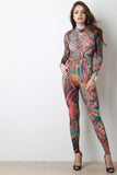 Semi-Sheer Abstract Print Mesh Jumpsuit
