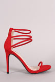 Anne Michelle Suede Triple Ankle Strap Single Sole Heel