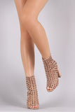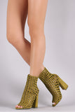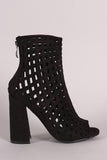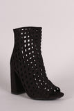 Suede Perforated Peep Toe Chunky Heeled Booties