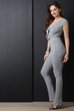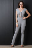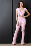 • Ribbed Knit Self Tie Keyhole Jumpsuit