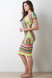 Tribal Kaleidoscope Short Sleeves Bodycon Midi Dress