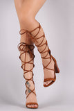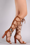 Bamboo Suede Braided Lace-Up Chunky Heel