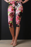 Semi-Sheer Mesh Floral Print Capri Leggings