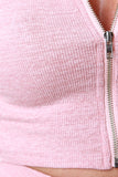 This sporty crop top features a sleeveless design, scoop neckline, hood, double stripe on both sides, cropped hem, finished with an exposed zipper front. Accessories sold separately. 60% Cotton, 35% Polyester, 5% Spandex.
